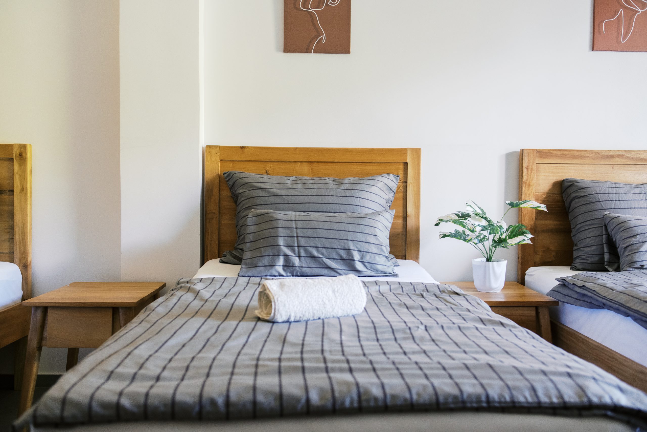 Step out directly to the pool from this first-floor room and enjoy a comfortable stay with the family, complete with three single beds.